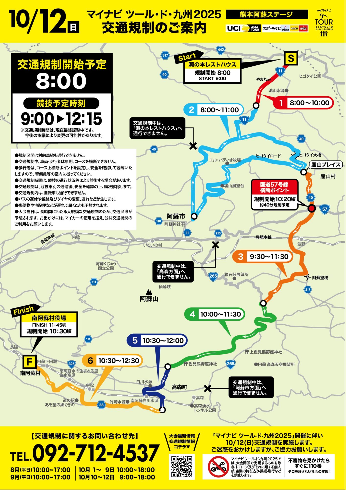 10月12日は瀬の本レストハウスを出発し、熊本阿蘇ステージ ゴールの南阿蘇村役場までの